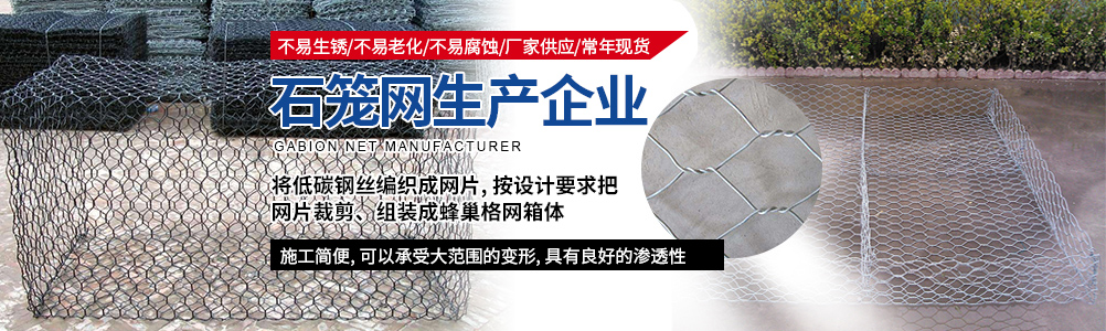 本公司主要生產:石籠網格賓網、重型六角網、鍍高爾凡格賓擋墻、雷諾護墊、綠濱墊、固濱籠、耐特籠、鉛絲石籠、格賓石籠、電焊石籠網、鍍鋅石籠網、河道石籠網、包塑石籠網、勾花網、高爾凡石籠網、三擰石籠網、五擰石籠網等,可用于保護和支持河道、海堤、山坡、路橋、水庫及其他土木工程, 是防洪固堤工程的上好材料。以可靠的質量,滿意的售后服務深受新老客戶的好評。